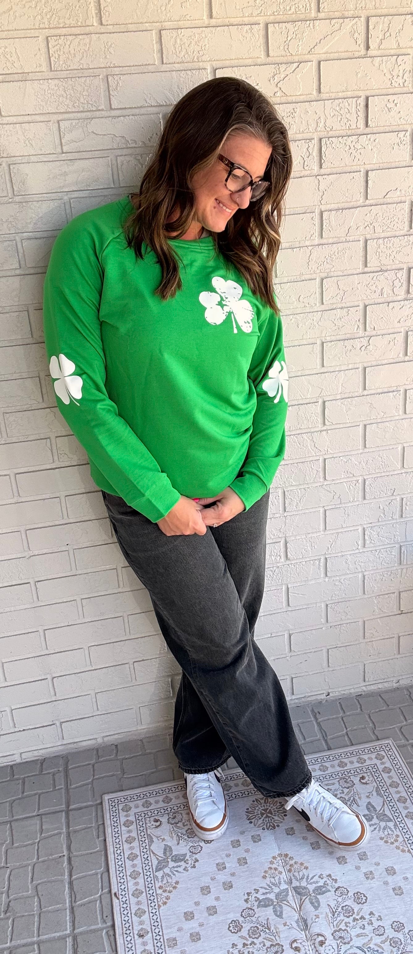 Vibrant Green sweatshirt with a vintage shamrock design. Perfect for cozy mornings, on the fairway or everyday wear. Pair it with denim and sneakers for an effortless look that keeps your heart grateful and your style on par.